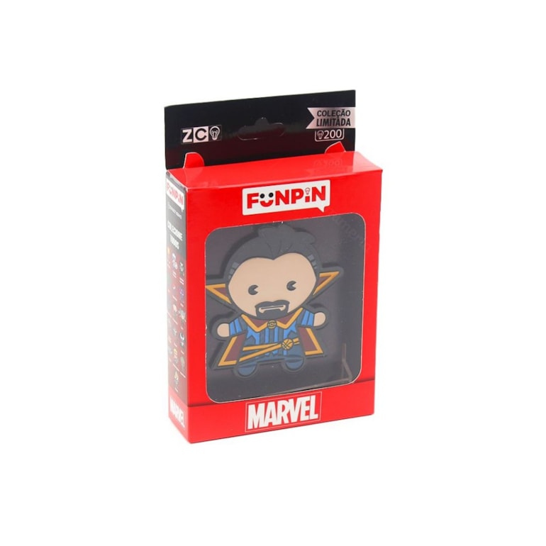 Trabalhado em metal, ele vem no formato do Doutor Estranho tendo destaque especial para suas cores e pequenos detalhes! Possui duas travas de metal traseiras que facilitam sua fixação em bolsas, peças de roupa e afins, impedindo que o mesmo seja perdido com facilidade, além de também vir com um suporte transparente para deixar o seu funpin paradinho, seguro e exposto na sua estante!