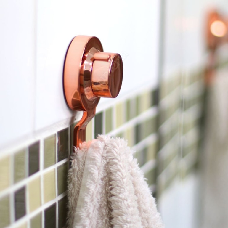 O Gancho Multiuso com Ventosa Praticità Utile em Aço Cromado Rose Gold é perfeito para a sua casa! Além de lindo, ele é muito útil, vai te ajudar a manter a organização cotidiana!