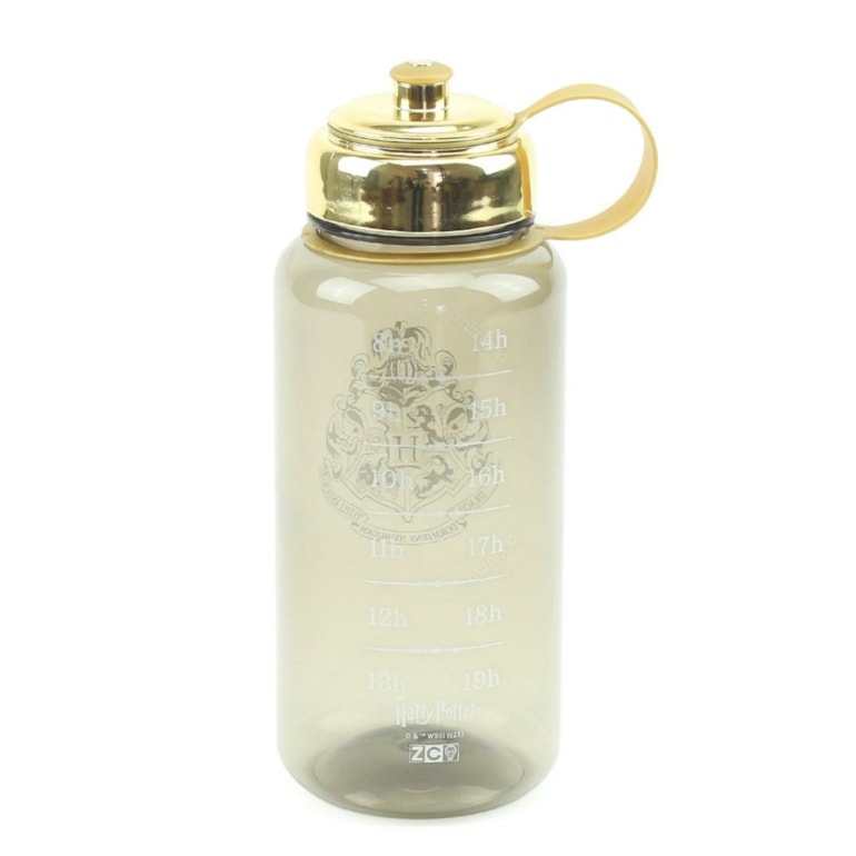 A Garrafa Jumbo Harry Potter Hogwarts 1 Litro conta com um brasão de Hogwarts estampado em branco também vem estampada com horários, das 08:00 às 19:00, para você lembrar de sempre se manter hidratado durante todos os momentos do seu dia!