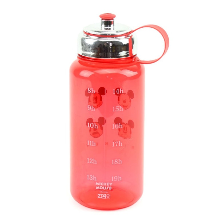 A Garrafa Jumbo Mickey Expressions 1 Litro vem com o Mickey Mouse fazendo “caras e bocas” e criando assim várias expressões divertidas em seu corpo! Ela também vem estampada com horários, das 08:00 às 19:00, para você lembrar de sempre se manter hidratado durante todos os momentos do seu dia!