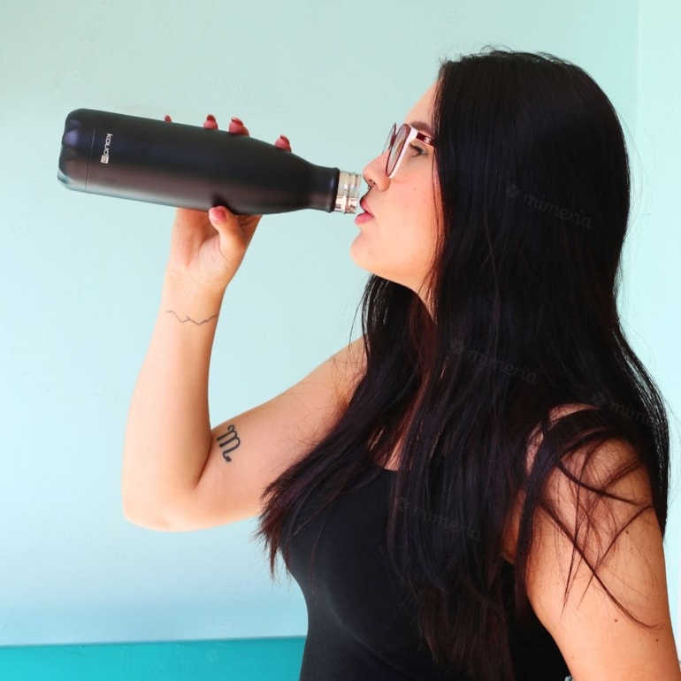 Ela é térmica, tem parede dupla com isolamento a vácuo, além disso é hermética, então o líquido fica isolado do ambiente externo, o que mantém a temperatura. Produzida em aço inox e com tecnologia que elimina o suor ocasionado pela condensação, a garrafa também conserva bebidas frias por até 24h e as quentes por até 12h. Tudo de bom, né?