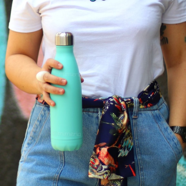 A Garrafa Térmica de Inox Parede Dupla 500 ml Grey Verde Água é belíssima! Perfeita para você que adora candy colours e é cheia de estilo.