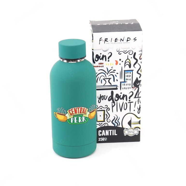 Completamente pensada no mundo de Friends, a garrafa é inspirada no Central Park - o café favorito desses amigos inseparáveis. Ela vem com fundo verde e com o logo do estabelecimento estampado. Legal, né? Você vai se sentir como se estivesse sentado em um dos sofás confortáveis do local, conversando com Ross, Rachel, Phoebe, Joey, Mônica e Chandler.