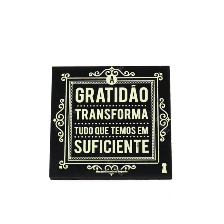Com fundo preto e estampado com umas moldurinhas super fofas e a frase: "A gratidão transforma tudo que temos em suficiente".