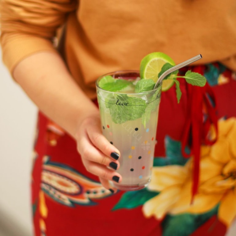O Kit 2 Copos de Vidro Mini Dots 450 ml é ótimo para combinar com outros mimos de cozinha da mesma coleção e decorar sua casa com charme e fofura!