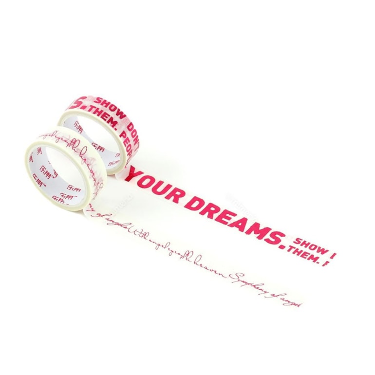 Produzido em papel, este kit vem com duas lindas fitas adesivas com cinco metros cada uma com palasvras manuscritas e frases inspiradoras como: "Don´t tell people your dream, show them", com tons de rosa são perfeitas para enfeitar tudo que quiser. Um mimo! Você vai amar!