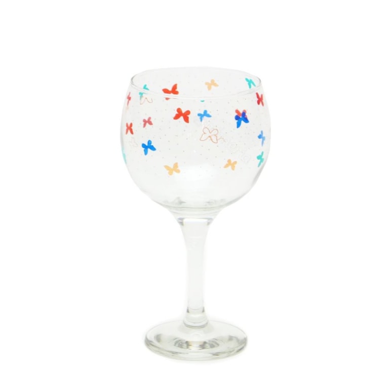 O Kit 2 Taças de Gin de Vidro Borboletas 655 ml vem estampado com lindas borboletas coloridas em fundo transparente. Ideal para combinar com outros mimos da mesma coleção!