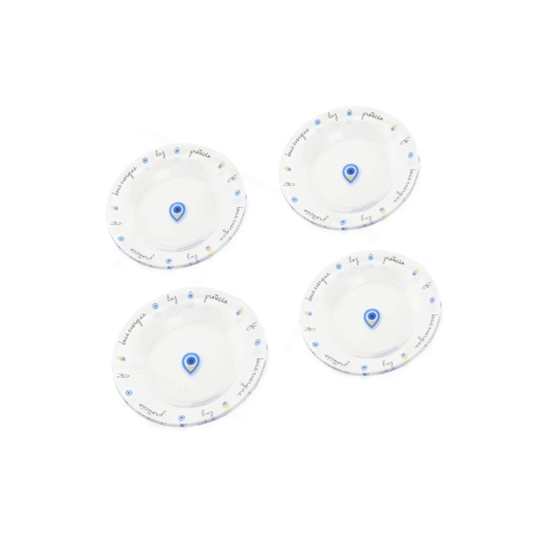 - Kit 4 Pratos de Sobremesa de Vidro Olho Grego Boas Energias;