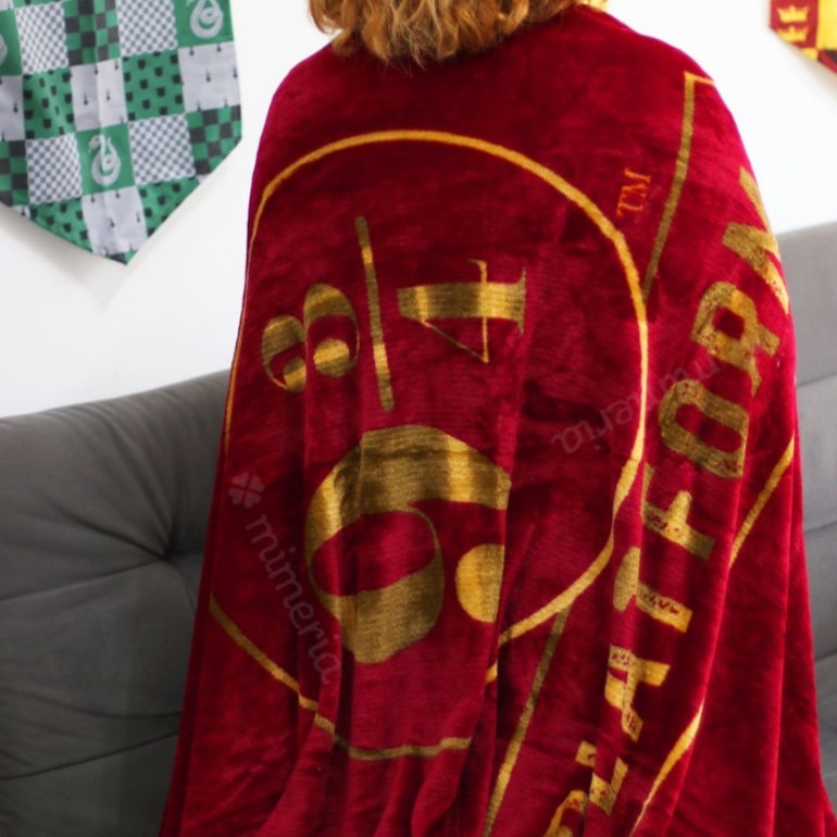 Criado através de muitos feitiços, esse kit conta com um balde de pipoca gigante, e uma manta estampada super quentinha e macia! Ele vem com a estampa mais linda da vida, a da plataforma 9 ¾! Ela vem trabalhada em um tom de vermelho vivo, com destaques em dourado e preto!