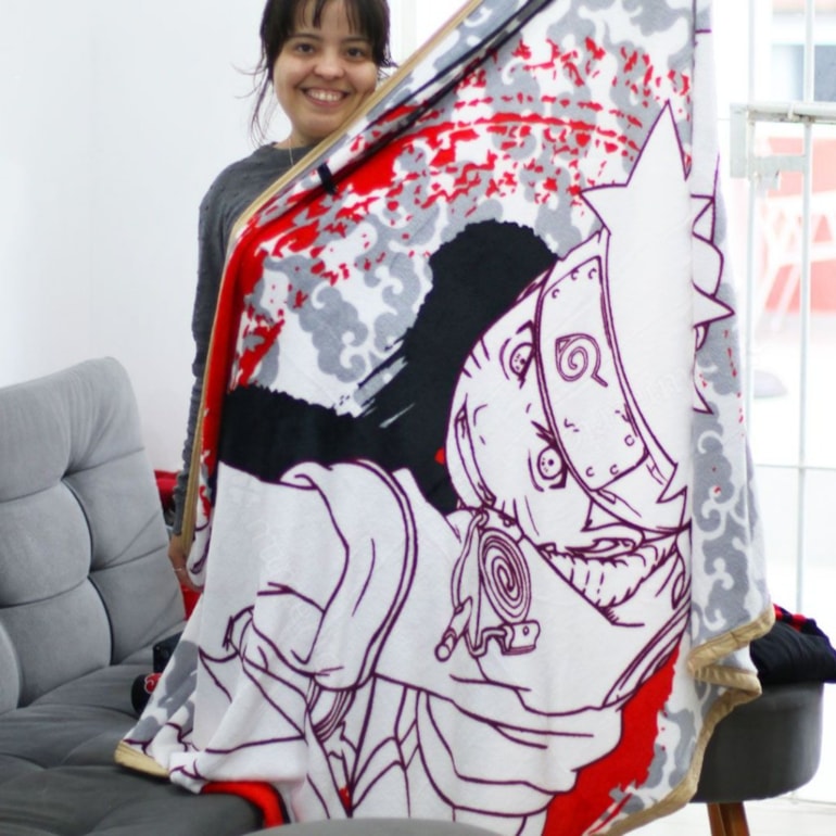 O Kit Balde de Pipoca e Manta Naruto é um produto oficial Naruto! Ele vem trabalhado com tons de vermelho, branco e cinza, e inteiramente estampado com riqueza de detalhes! É exatamente o que você precisava para maratonar Naruto em temporadas de frio, e da maneira mais aconchegante e ninja possível!
