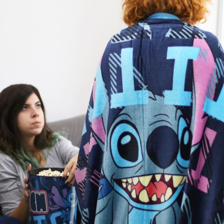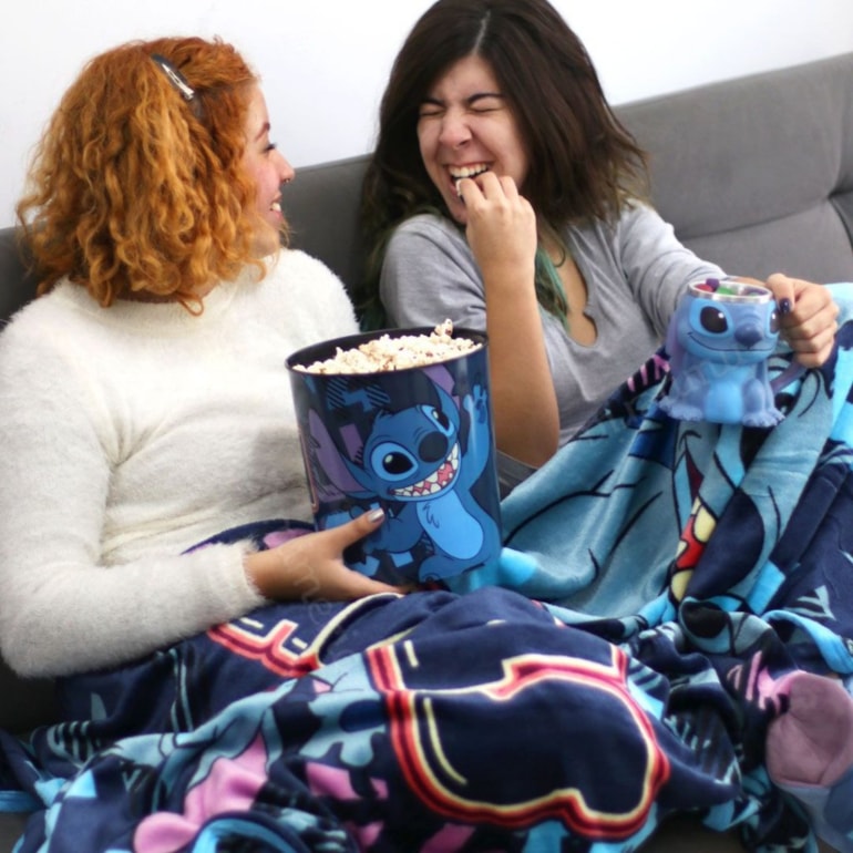 O intergaláctico azul mais amado de todos os tempos chegou pra ficar! Com o Kit Balde de Pipoca e Manta Stitch os seus momentos vão ser sempre quentinhos, macios, e muito divertidos!