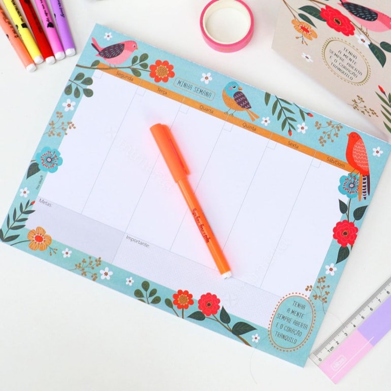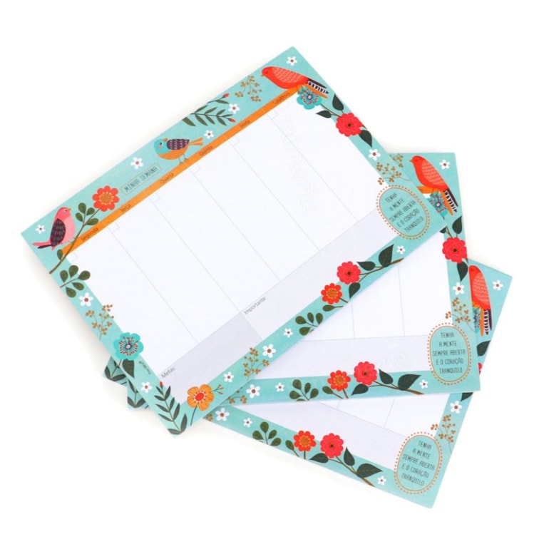- Kit Blocos Planner Semanal Pássaros 3 Unidades;