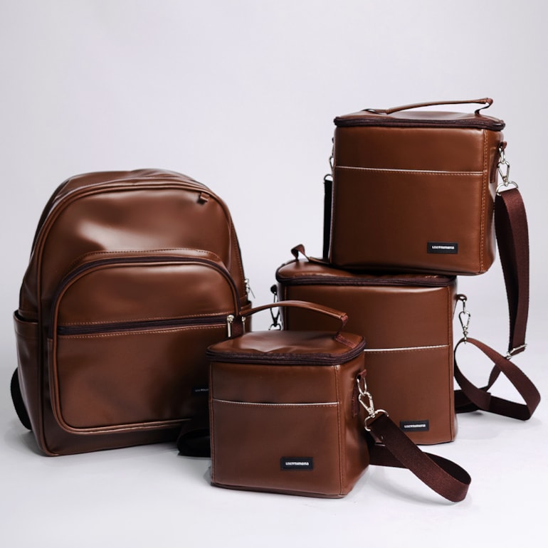 - Kit Bolsa Tote Midi com Alça + Mochila Essential + Térmica Move Grande Marrom Cacau;