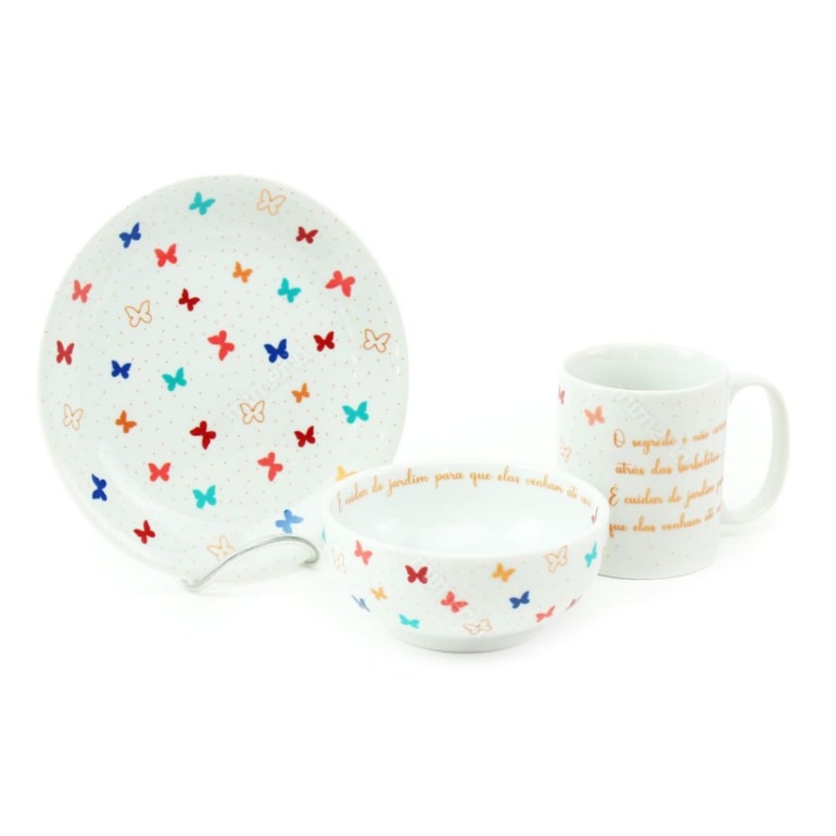 - Kit Café da Manhã com Xícara Pires e Bowl de Porcelana Borboleta;