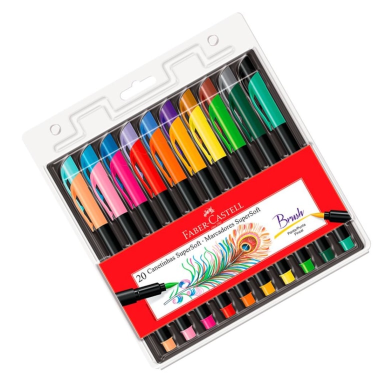 - Kit Caneta Hidrográfica Faber-Castell SuperSoft Brush Pen Tons Pastéis 20 Cores;
