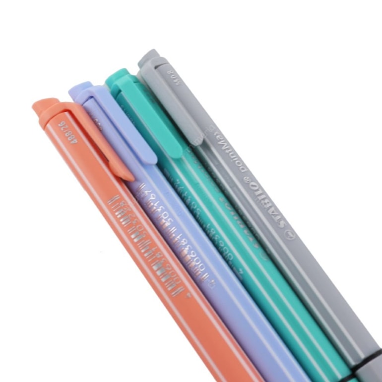 O Kit Canetas Stabilo PointMax Tons Pastéis com 4 Cores tem tinta à base de água, conta com tampa ventilada e ainda vem com um clipe para prender na capa de cadernos e afins. Tudo o que você poderia querer!