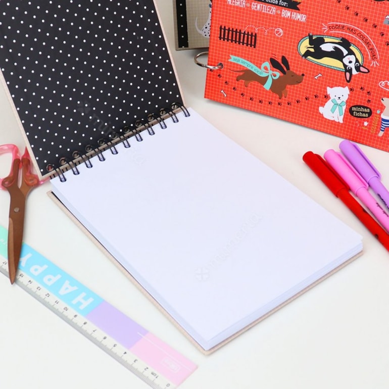 - Porta-Fichas: 50 folhas em papel offset 180 g/m², sendo 25 pontilhadas e 25 pautadas.