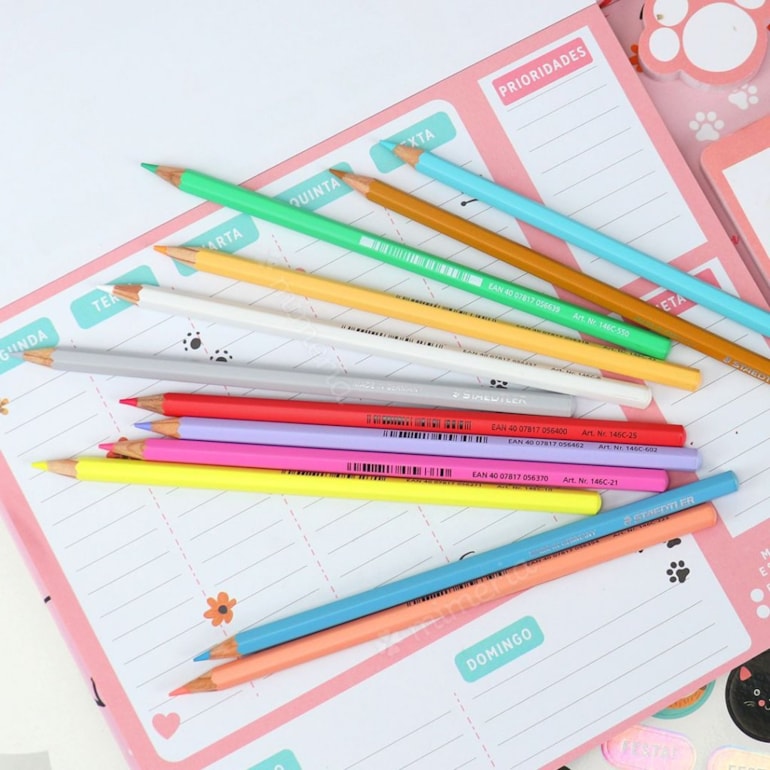 - Kit Lápis de Cor Staedtler Pastel 12 Cores;