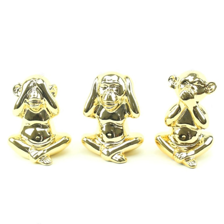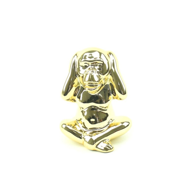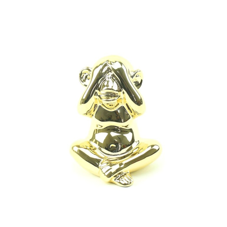 - Kit Macaco em Cerâmica Não Fala, Não Ouve, Não Vê Dourado;