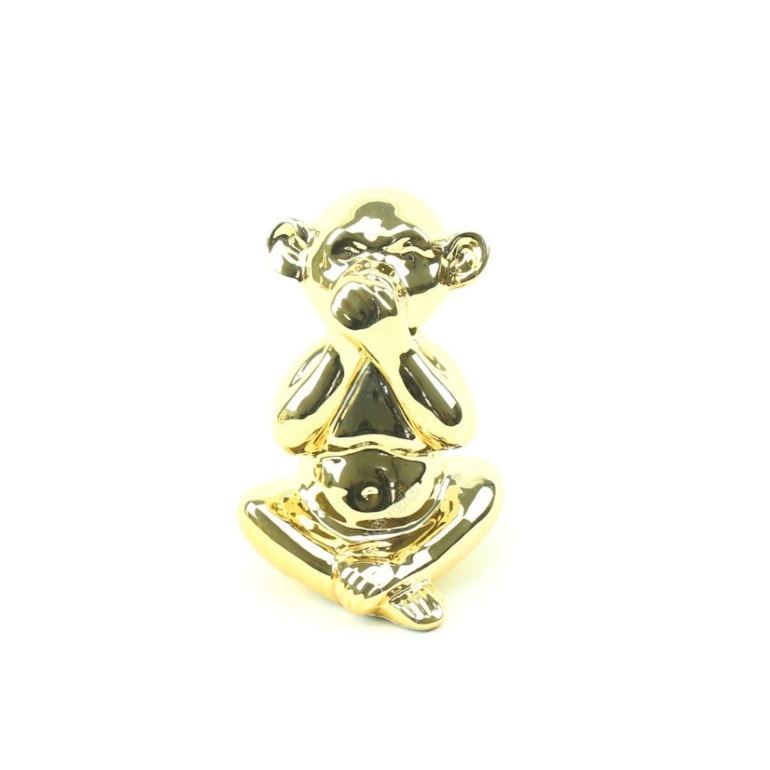 O Kit Macaco Decorativo em Cerâmica Não Fala, Não Ouve, Não Vê Dourado é lindo e, de uma forma divertida, faz referência ao provérbio japonês: “Não ver o mal, não ouvir o mal, não falar o mal”. Tudo o que você poderia querer!