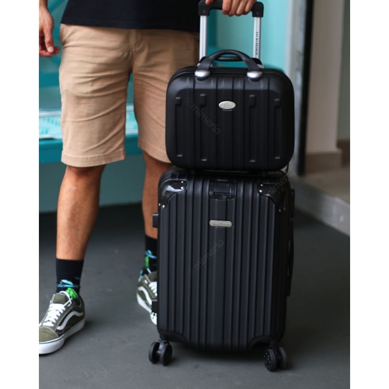 - Kit Mala de Viagem com Rodinhas e Frasqueira Contempo Preto;