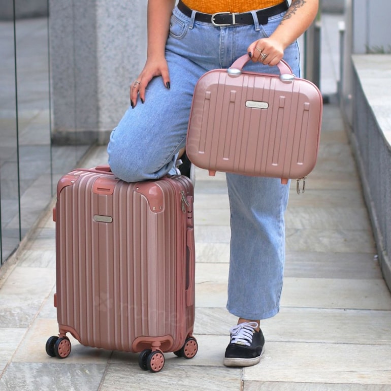 - Kit Mala de Viagem com Rodinhas e Frasqueira Contempo Rose Gold;
