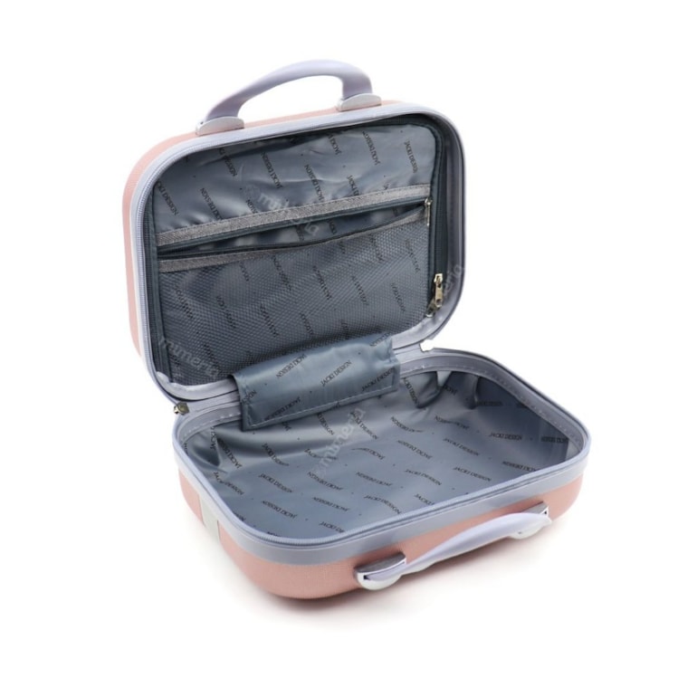 O kit conta com uma frasqueira com alça prata é produzida em policarbonato e ABS resistente. Possui um amplo espaço interno, divisória central com bolsos organizadores e sistema de alça carona para acoplar no carrinho da mala e facilitar no transporte. Ideal para guardar maquiagem, documentos, e acessórios pequenos. Um mimo!