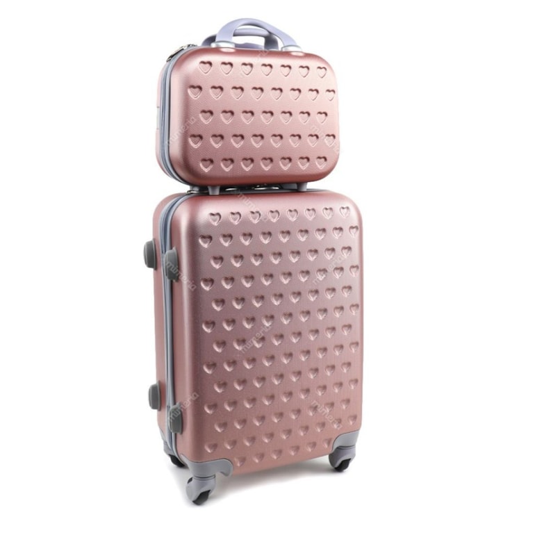 - Kit Mala de Viagem com Rodinhas e Frasqueira Love Rose Gold? e Prata;