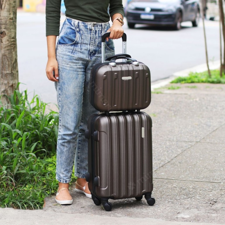 - Kit Mala de Viagem com Rodinhas e Frasqueira Trip Cobre;
