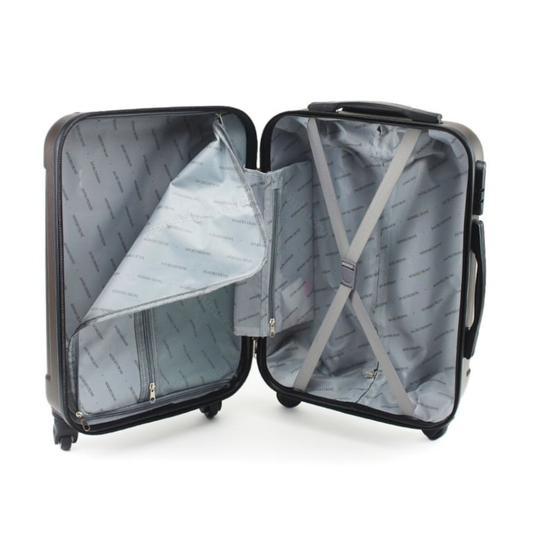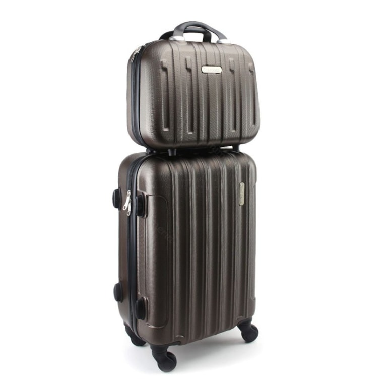 A mala do Kit Mala de Viagem com Rodinhas e a Frasqueira Trip Cobre são produzidas em ABS resistente, semi-rígido, ideal para levar todos os seus pertences em segurança. A mala tem rodinhas 360º, reforço nas quinas superiores e um ótimo espaço interno com compartimentos e elásticos para você distribuir todas suas coisas como desejar. Ela também já vem com trava de segurança e possui duas alças fixas e uma alça retrátil. Super fácil de usar e carregar por aí!