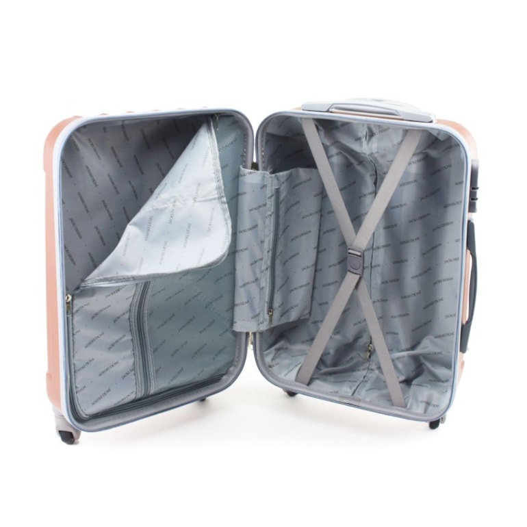 A mala do Kit Mala de Viagem com Rodinhas e a Frasqueira Trip Rose Gold e Prata são produzidas em ABS resistente, semi-rígido, ideal para levar todos os seus pertences em segurança. A mala tem rodinhas 360º, reforço nas quinas superiores e um ótimo espaço interno com compartimentos e elásticos para você distribuir todas suas coisas como desejar. Ela também já vem com trava de segurança e possui duas alças fixas e uma alça retrátil. Super fácil de usar e carregar por onde for! Não é lindo!!!