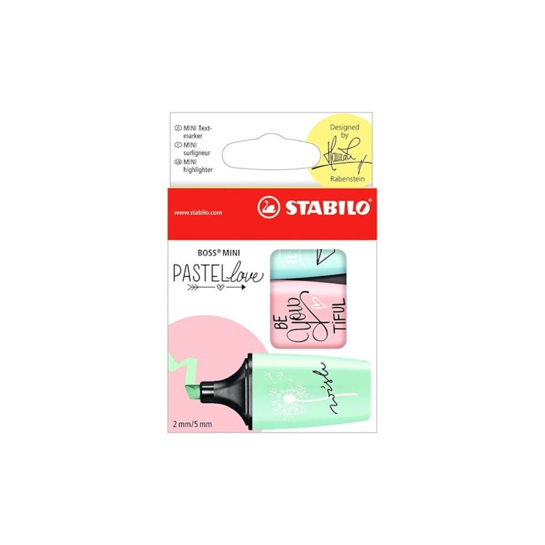 O Kit Marca Texto Stabilo Boss Mini Tons Pastéis Azul, Verde e Rosaé ideal para ser usado na escola, faculdade, no escritório e muito mais.