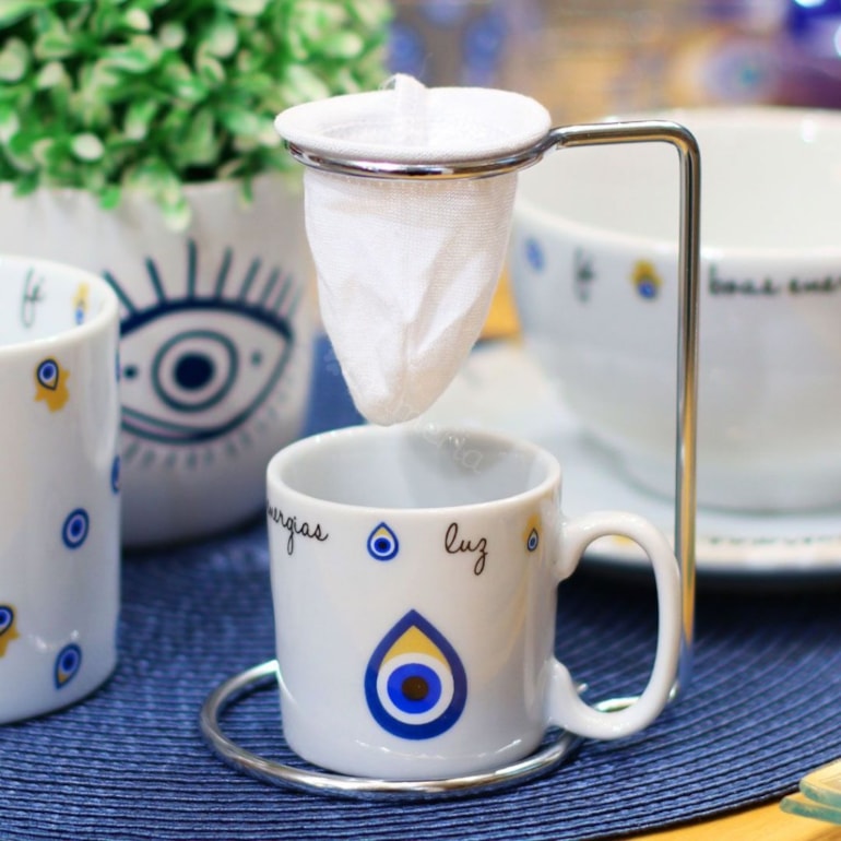 - Kit Mini Caneca de Porcelana com Coador Olho Grego Boas Energias;