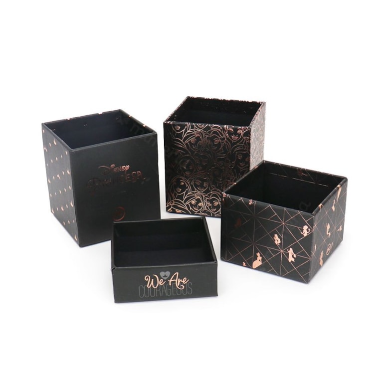 O Kit Organizador com 5 Peças Princesas vem todo estampado com coroas, símbolos de cada princesa, corações e o rosto de diversas princesas trabalhado em traços finos e em rose gold, tudo sobre um belíssimo e contrastado fundo de preto fosco! É o mimo mais icônico, nostálgico e delicado da vida!