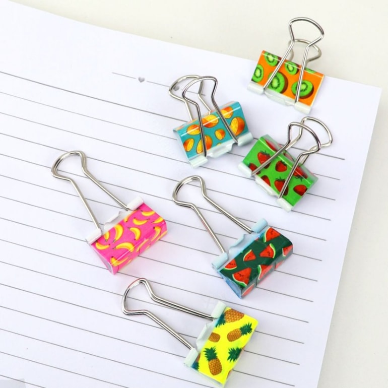 O Kit Prendedores de Papel Tris Holic Tropical 6 Unidadestem lindas estampas temáticas com frutas: abacaxi, abacate, banana, laranja, morango e melancia. Um verdadeiro mimo!