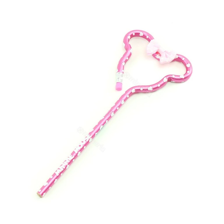 Produzido em materiais de alta qualidade, este lápis tem design único no formato da carinha da Minnie de lacinho e estampa fofinha branca e rosa. Um charme!