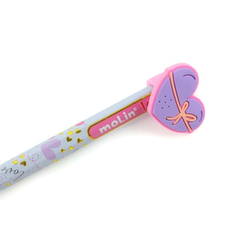 Produzido em materiais de alta qualidade, este lápis tem ótimo acabamento e linda estampa de corações dourados em fundo lilás e topo em formato de coração. Um verdadeiro mimo!