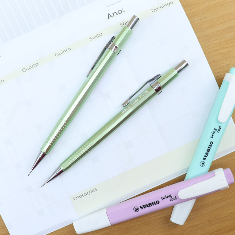 Tenha traços delicados e finos com a Lapiseira Pentel Sharp P200 Metálica Verde, que está disponível em duas pontas finas: 0.5 e 0.7.