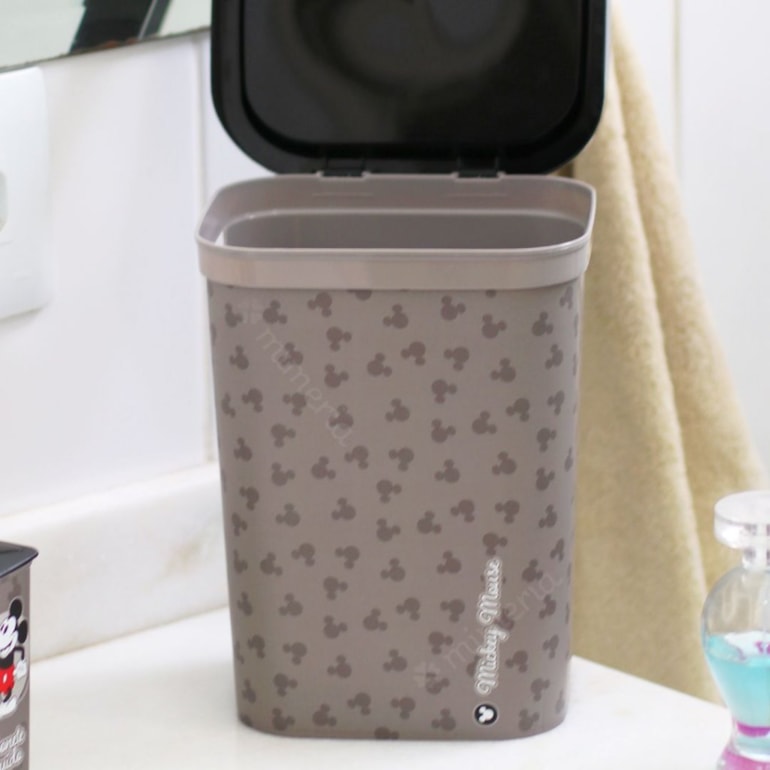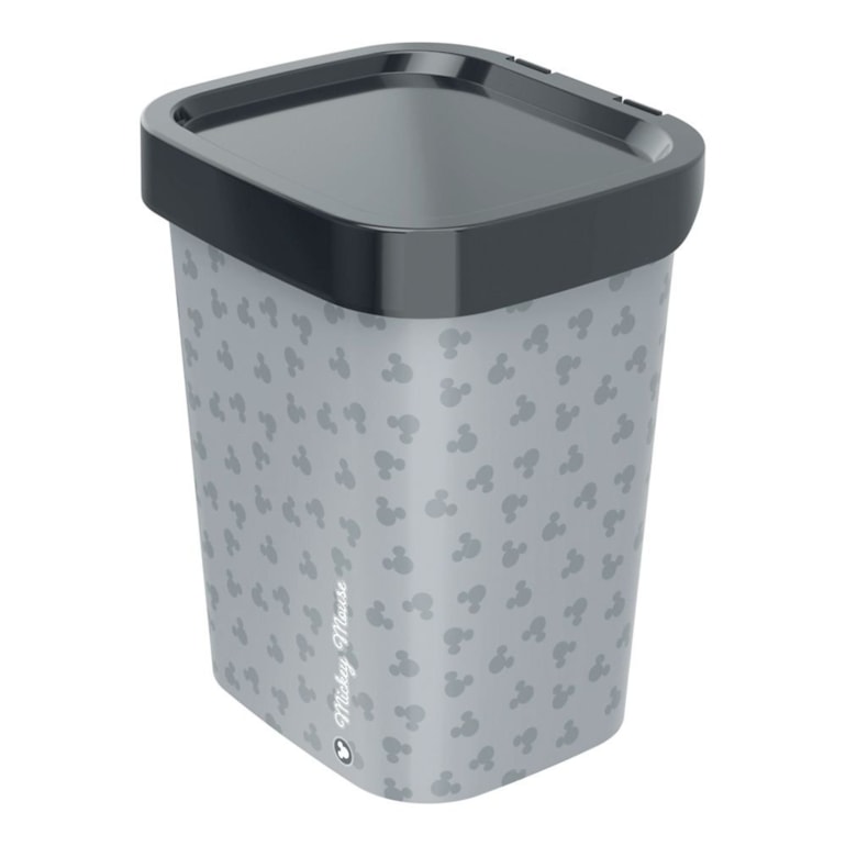 Ela abre fácil, esconde a sacola plástica, além disso, tem o design inspirado no ratinho mais famoso de todos os: o Mickey Mouse. Com o fundo cinza e o rostinho do Mickey estampado, essa lixeira esbanja qualidade e mimo!