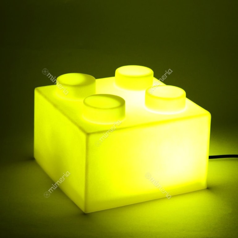 A Luminária Bloco de Montar Amarelo tem o formato de um bloco de montagem, com pinos, na cor amarelo. Com sistema bivolt, funciona tanto em 110 ou 220 volts, sendo prática de ligar e desligar (basta um clique). A lâmpada deverá ser de até 10w e deverá ser adquirida a parte.
