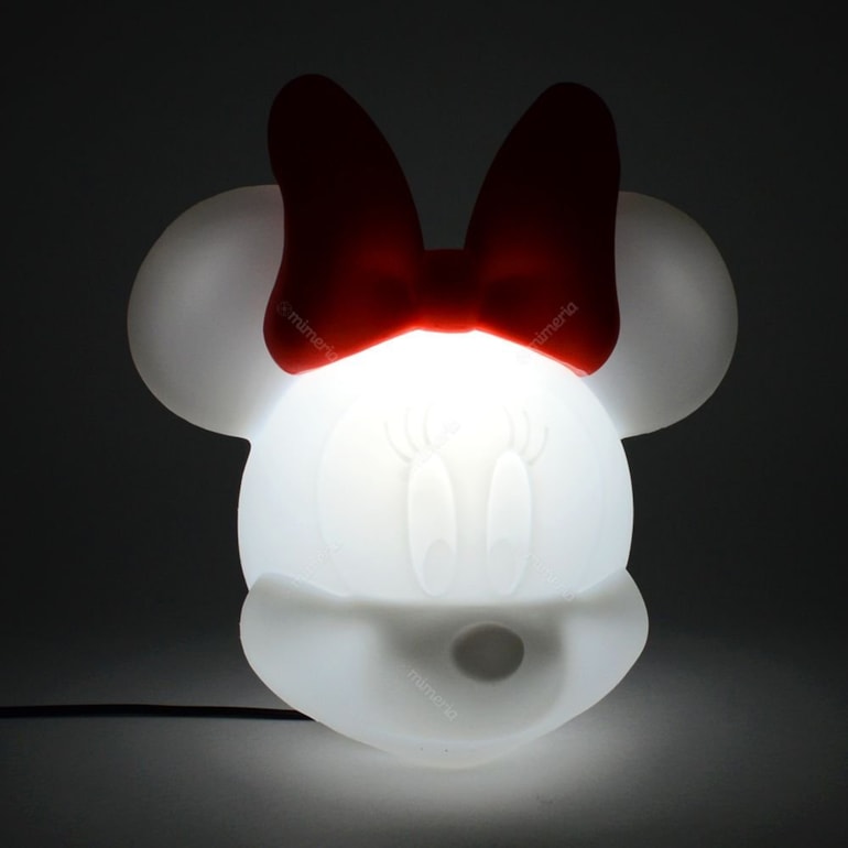 Fabricado em polietileno, este abajur conta com um sistema bivolt (funciona em tonadas 110V e 220V) e tem capacidade para lâmpadas fluorescentes de até 15W. Perfeito para colocar no quarto da sua filha, também fica ótimo em outros ambientes da sua casa, ainda mais se combinados com outros itens decorativos da ratinha mais famosa da Disney.