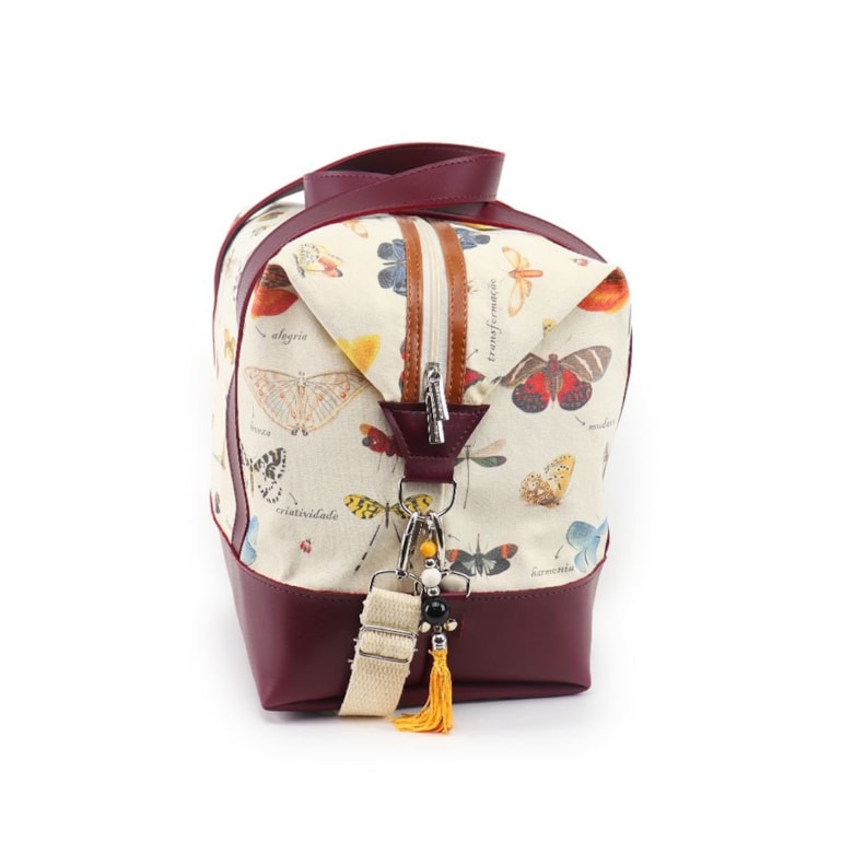 Misturando tendências de um boho chic com um toque de criatividade, a Mala Findi Borboleta é incrível! Ela conta com um par de alças fixas reforçadas, uma alça transversal regulável e removível, fechamento em zíper duplo e detalhes trabalhados em tecido sintético de cor bordô, um mimo surreal!