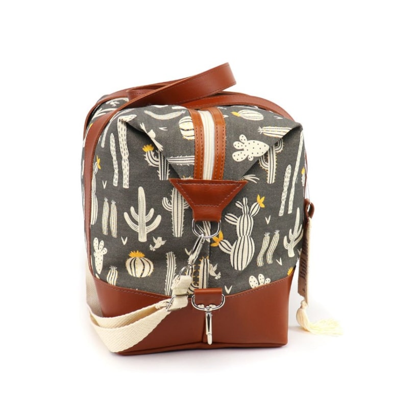 A Mala Findi Cactos Cordel é produzida em lona de alta qualidade e vem estampada com variações de cactos em preto e branco em referência à literatura de cordel e suas ilustrações em xilogravura. Simplesmente maravilhosa! Ela também conta com acabamentos em marrom e com seu fechamento em zíper, além de possuir duas possibilidades de encaixe com a mesma alça, permitindo um design único e bastante versátil! Conheça todos os produtos da linha e arrase! Use Mimeria!