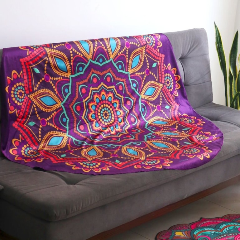 Ieal para deccorar o sofá, a cama, o jardim, uma mesa ou ainda pendurá-la na parede do quanto ou da sala, ou até mesmo no seu cantinho de yoga ou meditação. A Manta Mandala Aveludada Roxa é lindíssimo e vai levar só boas energias para seu ambiente tornando-o muito mais zen. Encante-se por ela!