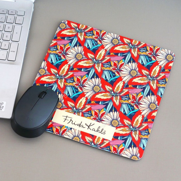- Mouse Pad Frida Kahlo Flores Coloridas;