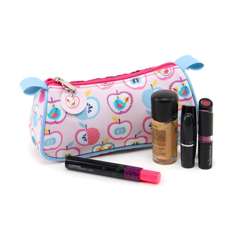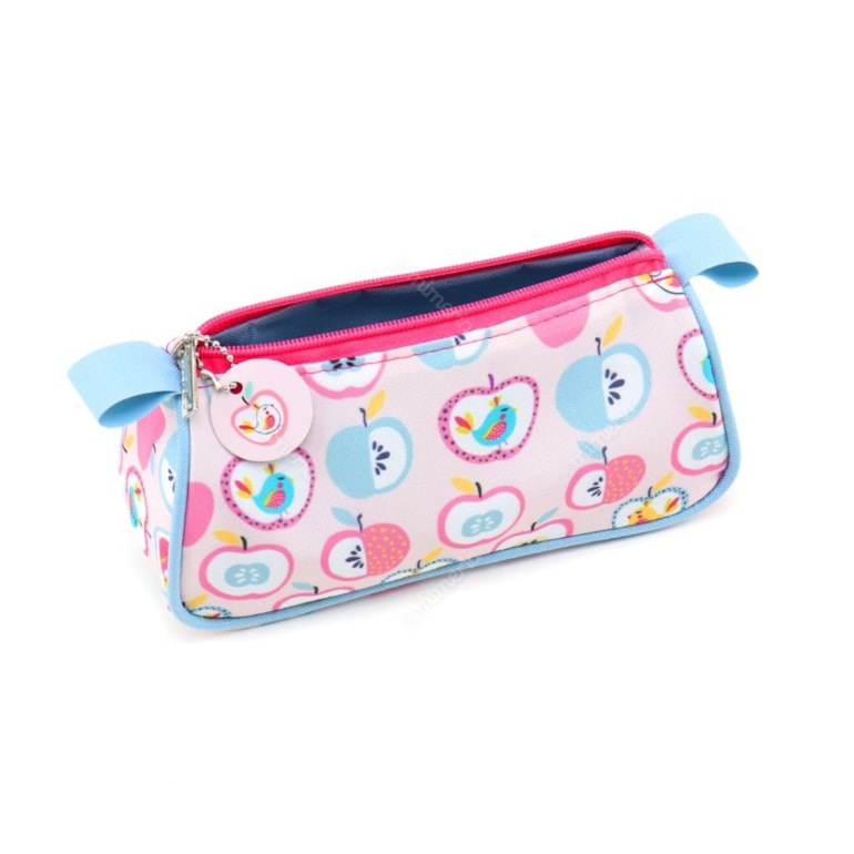 Com ótimo acabamento e design prático, esta necessaire vem estampada com maçãs em fundo rosinha com detalhes em azul e amarelo. Um verdadeiro mimo para você combinar com outros acessórios da mesma coleção, como nossas mochilas e bolsas, e presentear pessoas queridas em datas especiais!