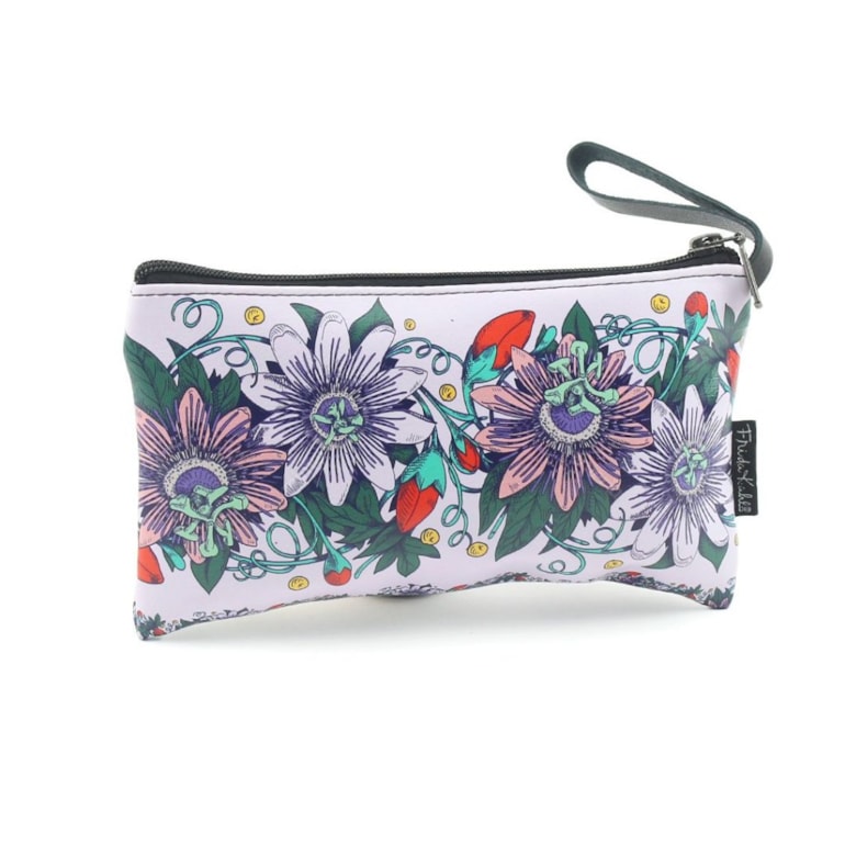 A Necessaire Estampada Pequena Frida Kahlo Flor de Maracujá é lindinha! Perfeita para combinar com outros mimos de uso pessoal da mesma coleção!