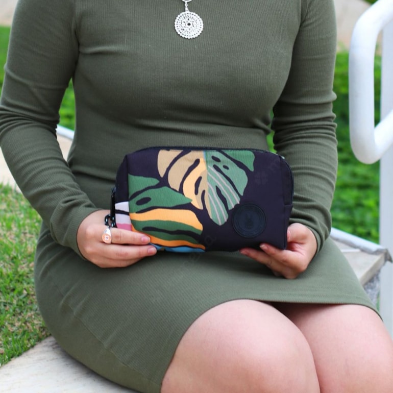 Trabalhada inteiramente em poliéster, conta com forro interno e tem tamanho maior do que as necessaires de costume, é tudo o que te faltava para organizar seus itens básicos do cotidiano!