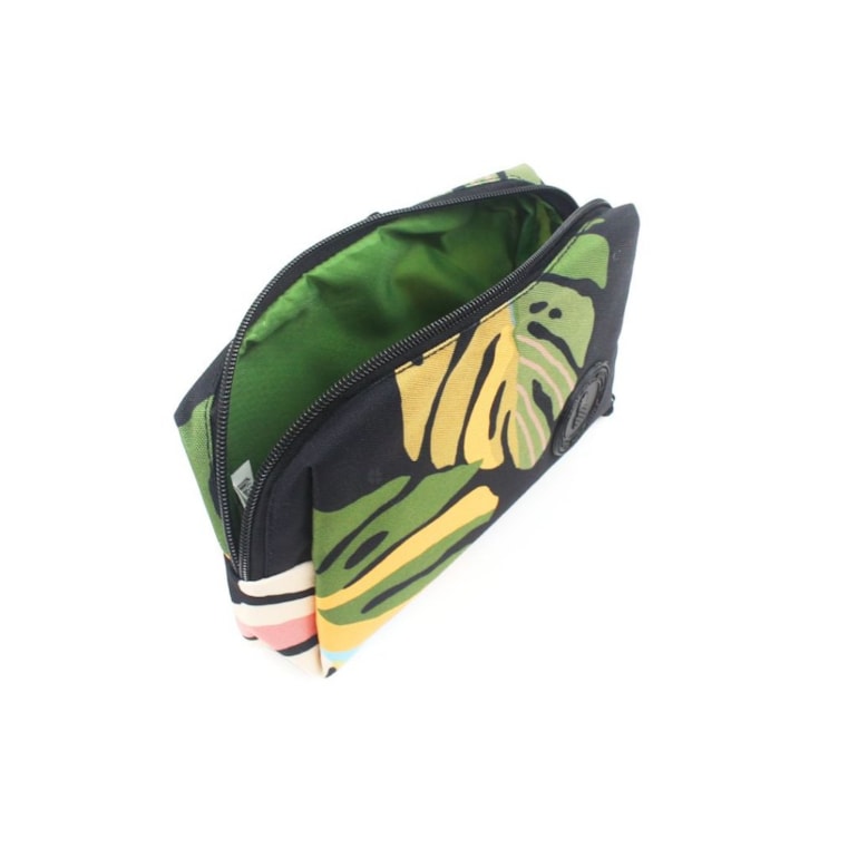 A Necessaire Farm Ora Bolas Costela Maxié perfeita para guardar suas maquiagens, itens de higiene, materiais de trabalho ou da faculdade e muitos outros! Ela vem com o fundo preto estampado com folhas modernas e ultra coloridas, exatamente o que você precisava!