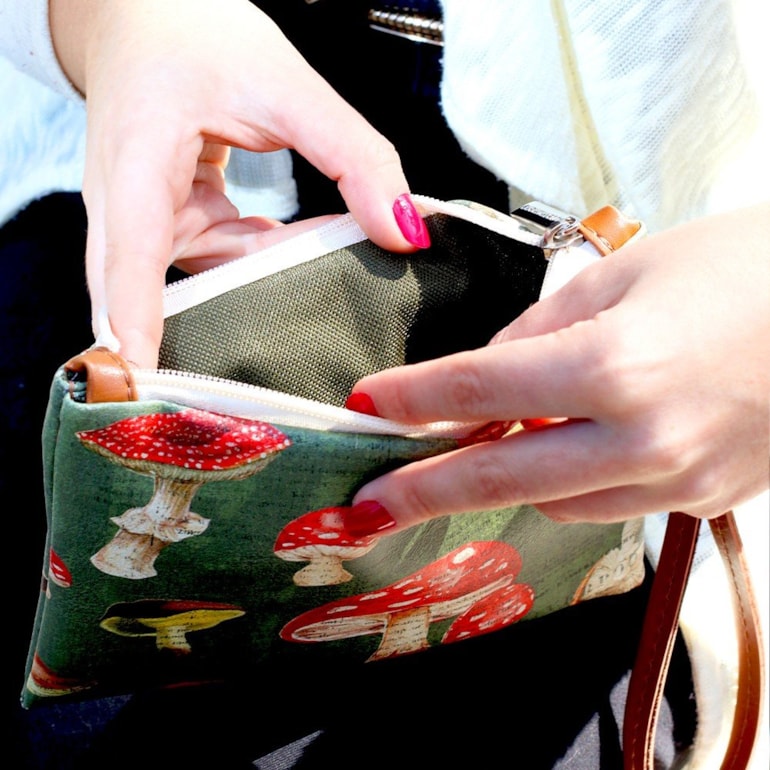 A Necessaire Flat Cogumelos Botanic Verde é extremamente bem trabalhada! Ela vem confeccionada em poliéster, tem o interior revestido com um tecido rígido da mesma cor de fundo da sua estampa, e vem com fechamento em zíper. Ela possui uma alça de mão removível, para anexá-la no pulso, e também conta com uma estampa perfeita de cogumelos vermelhos e marrons, sobre um fundo verde musgo com folhas e letras de jornal! Lindíssima! Essa é a necessaire mais completa e versátil que você vai ver, vem já garantir a sua!